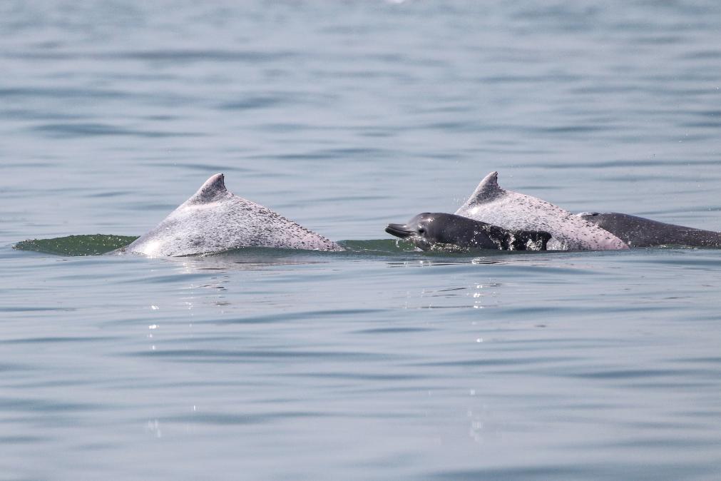 科研人员在海南岛西南海域目击到大量中华白海豚