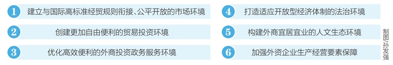 围绕“建立与国际高标准经贸规则衔接、公平开放的市场环境”,我省将优化市场准入环境和外商投资产业结构,保障平等参与市场竞争,包括对标国际高标准经贸规则、推进跨境服务贸易和投资高水平开放等。同时引导外资更多投向先进制造、现代服务、高新技术和节能环保等领域;支持外商投资企业依法平等参与国家标准、行业标准、地方标准和团体标准的制定、修订工作。