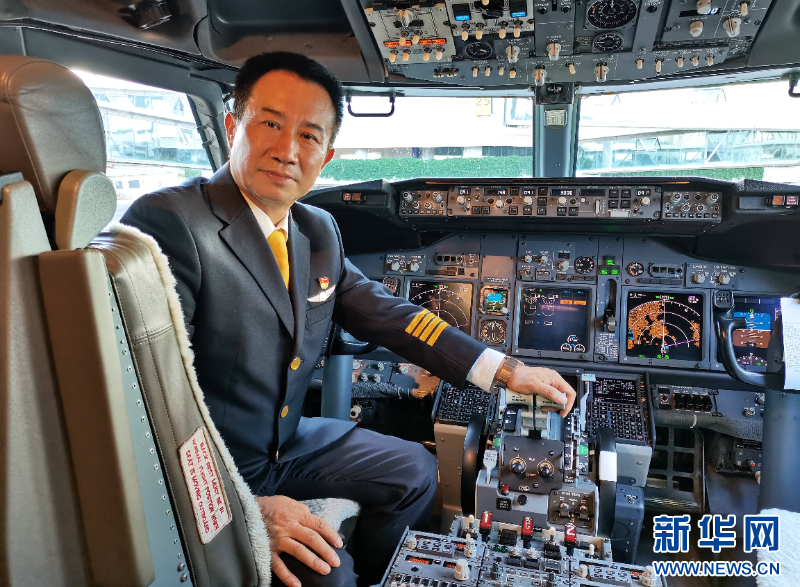 海南航空飞行员李雪峰在飞机驾驶舱。新华网发