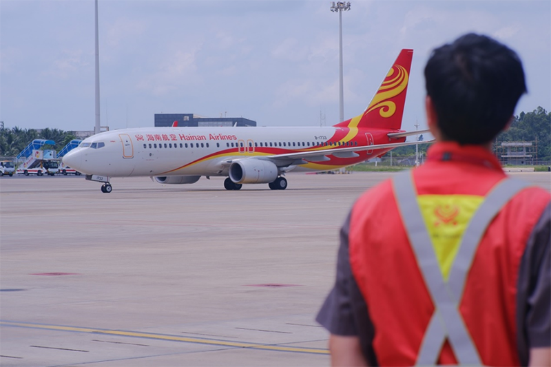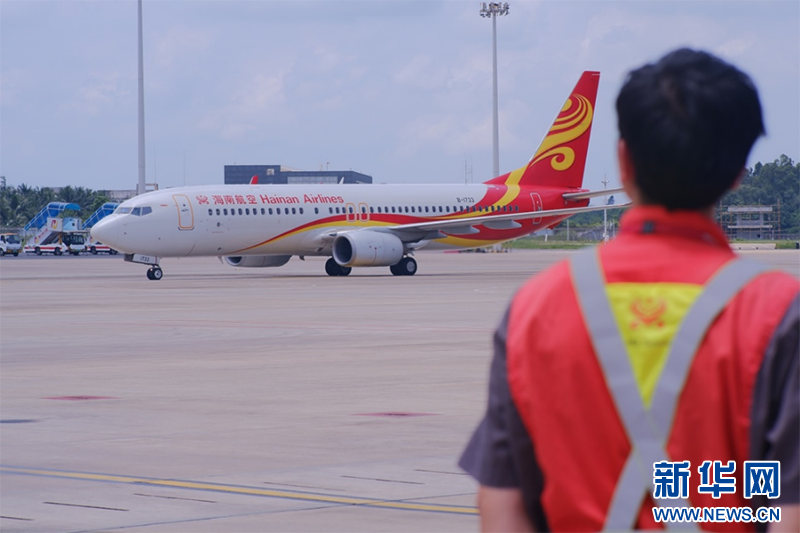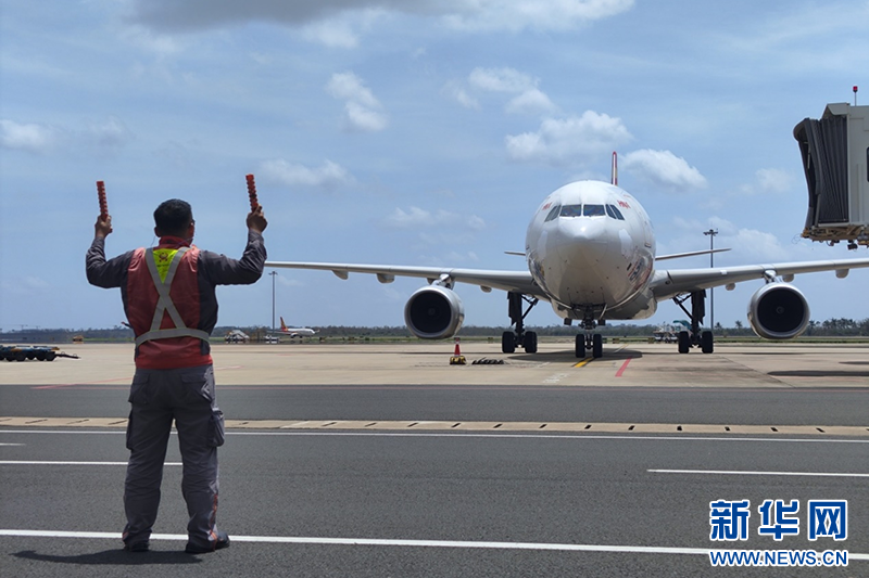 航线机务人员引导飞机降落。新华网发
