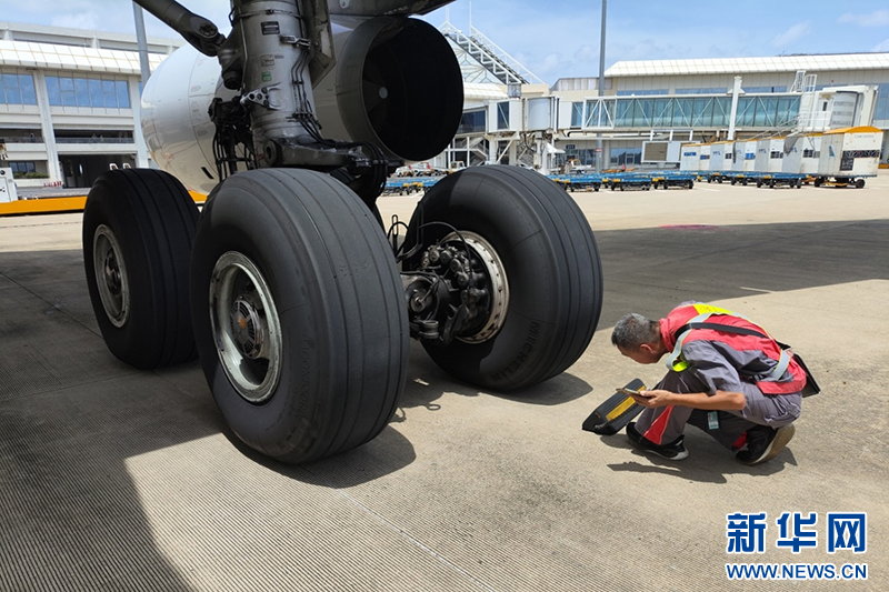 工作人员对落地后飞机的各个部件进行检查,确保每一处都符合安全标准。新华网发