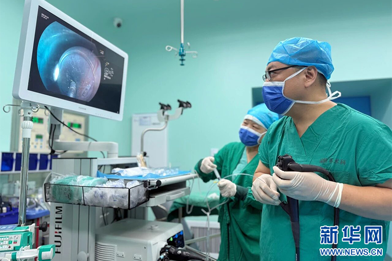 副院长、消化系统疾病中心主任曾俊涛为患者实施胃镜下贲门括约肌切开术(POEM),此为中心手术室二区启用当天进行的第二台手术。