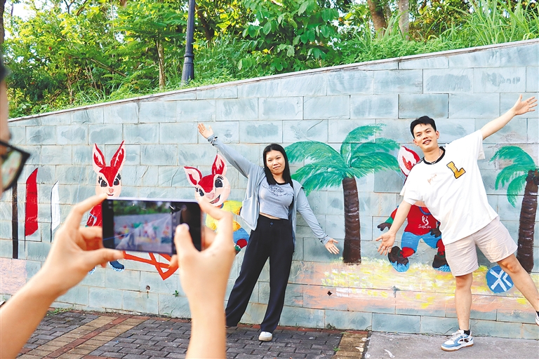 “这面绘画墙很生动,充满了热情和活力!”10月2日,在三亚临春岭森林公园,一道约八米长的第六届亚洲沙滩运动会(以下简称三亚亚沙会)主题绘画墙成了“热门打卡点”,吸引不少市民游客驻足欣赏、拍照打卡。
