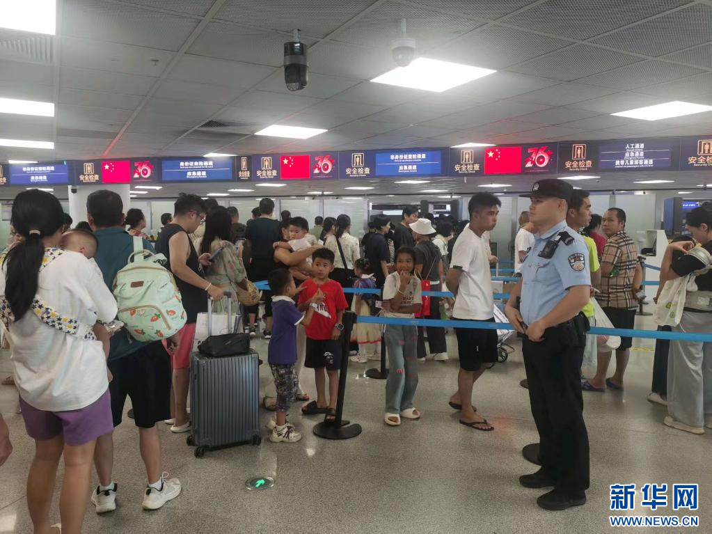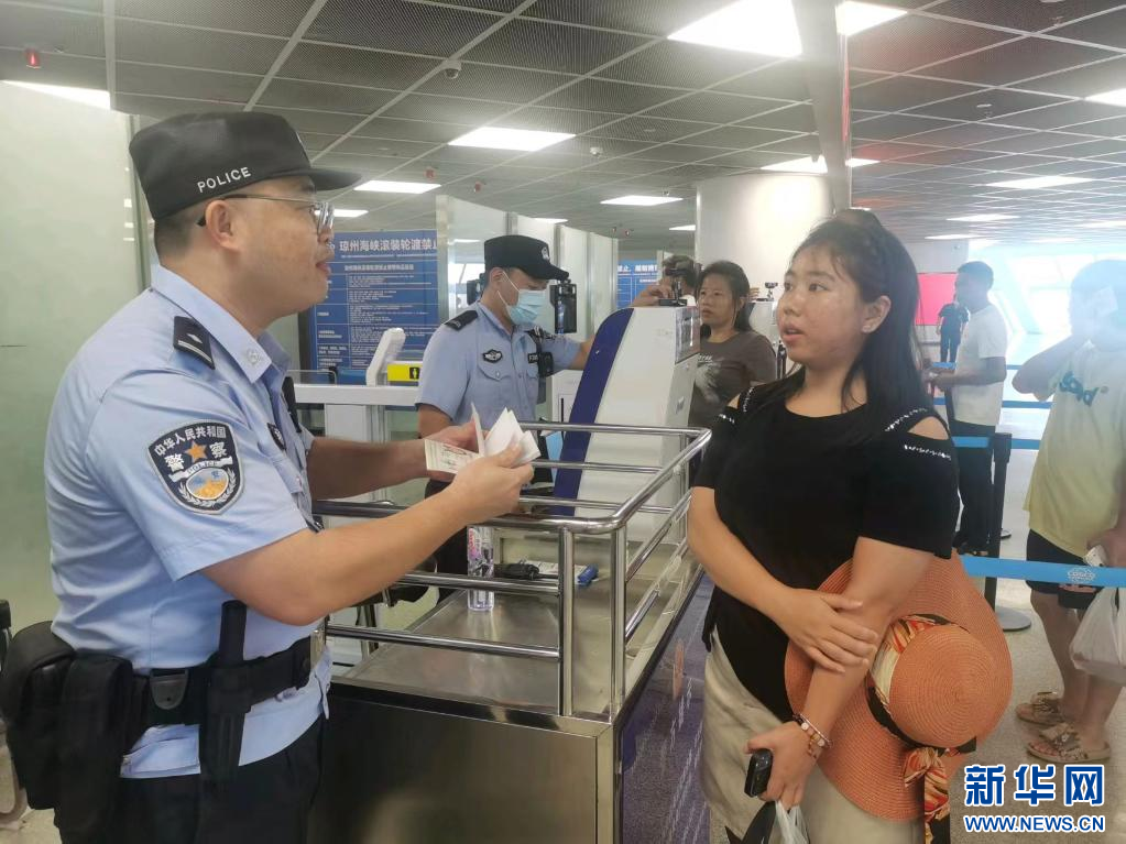 执勤民警为进出岛旅客提供引导和咨询。新华网发