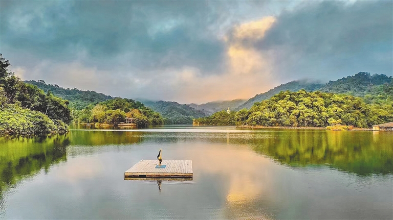 清晨的神玉岛,鸟鸣清脆,山风裹着雨林的湿润扑面而来。近日,刚结束桨板瑜伽体验的北京游客王莹,正照着景区设计的疗愈活动安排表规划行程——上午参与雨林溯溪等森林疗愈活动,傍晚体验按摩、推拿等项目。“平时在写字楼里久坐,来这里身心得到了久违的放松,心情也更好了。”王莹说。