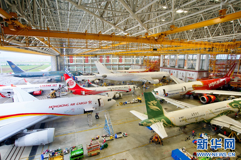在海南自贸港一站式飞机维修产业基地内,飞机正在接受海航技术提供的航空维修服务。新华网发