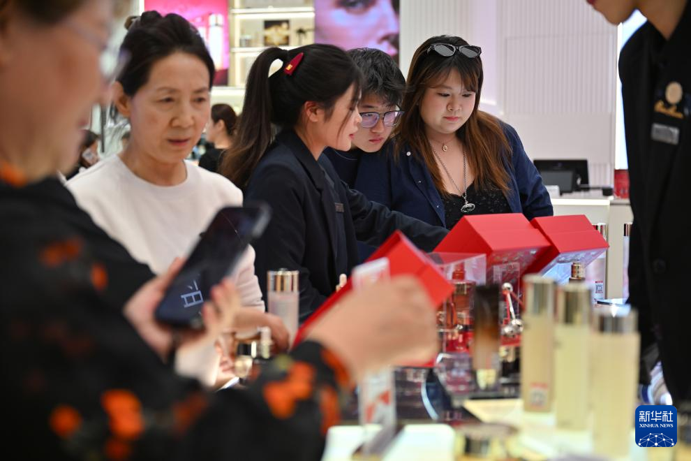1月17日,顾客在海口日月广场免税店购物。新华社记者 郭程 摄