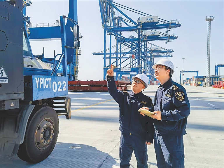 海关人员跟进货物通关、转运各环节,确保物流高效顺畅。海口海关供图