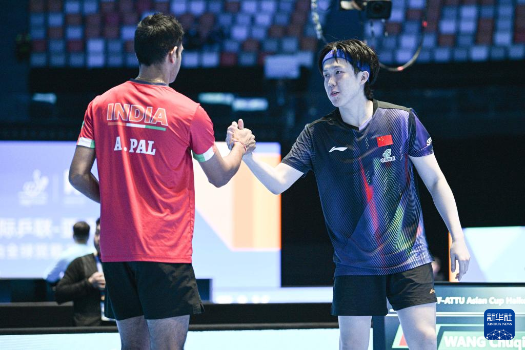 2月4日,在第35届国际乒联-亚乒联盟亚洲杯乒乓球赛男单小组循环赛第一轮比赛中,中国选手王楚钦3比0战胜印度选手阿卡什·帕尔。