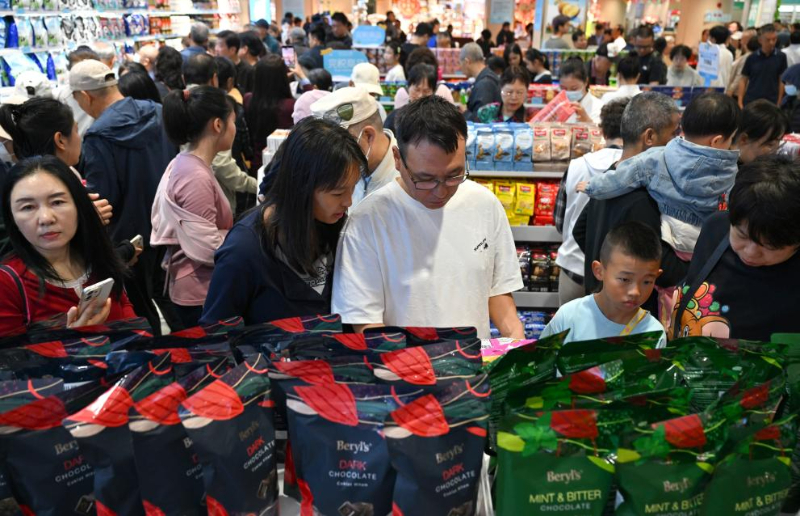2月11日,顾客在海口一家岛内居民日用消费品免税店购物。