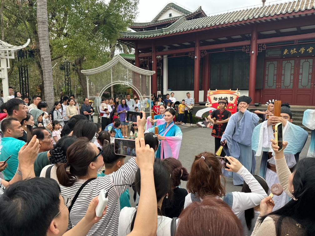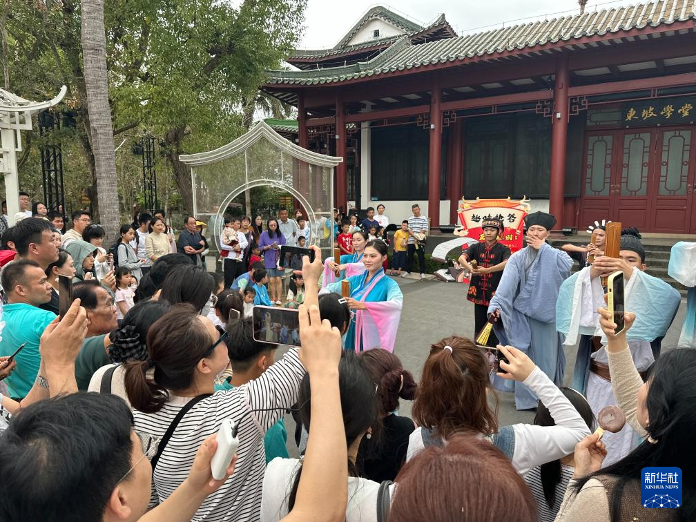 在儋州市东坡书院,游客们围在老榕树下,听工作人员吟诵《定风波》。一名穿汉服的姑娘被邀请与扮作苏轼的演员对诗,她脱口而出“此心安处是吾乡”,赢下一盏手工花灯。据园区管理公司预计,今年春节假期,书院游客接待量有望超6万人次,比去年春节假期增长20%。