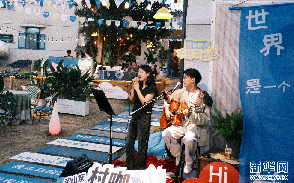 春节期间,青年艺术爱好者在海口市秀英区荣山寮村进行表演。