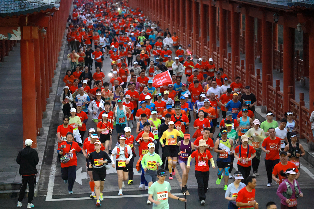 跑者们从百花廊桥出发