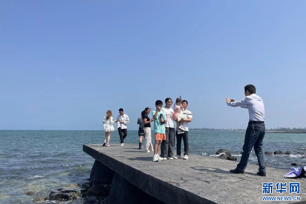 游客在海南神冲滨海旅游度假区拍照打卡。新华网发