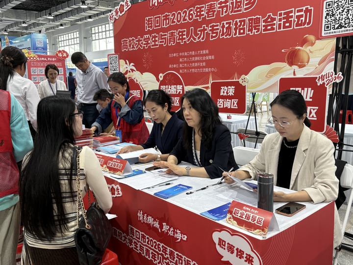 海南省2026年春节返乡人才对接会现场。新华网发