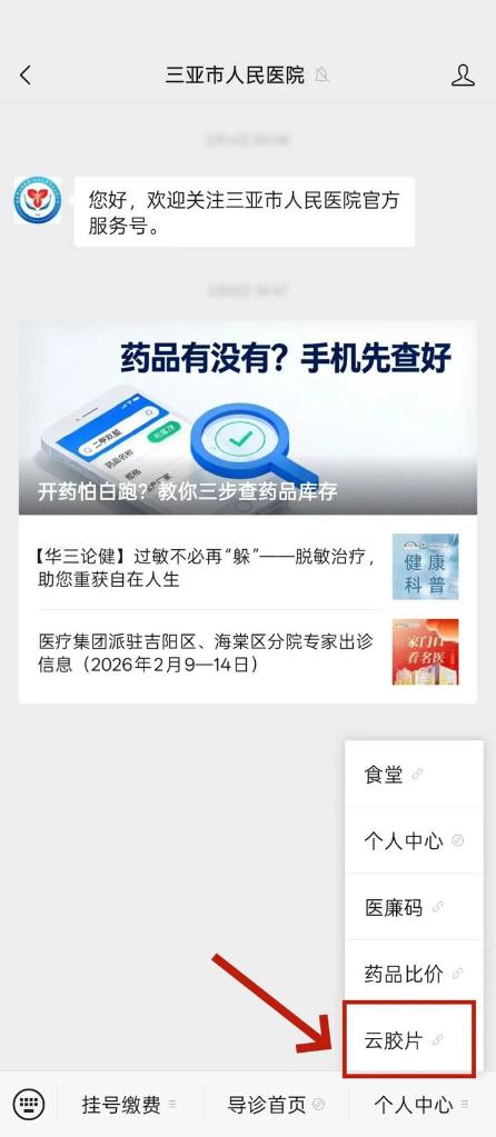 患者可从医院微信公众号“个人中心”进入“云胶片”版块获取数字影像。