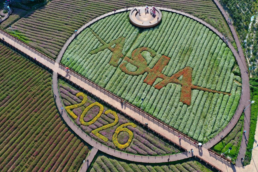 博鳌亚洲论坛2026年年会临近,琼海市博鳌镇南强村数十亩主题花海迎来盛放期,吸引游客前来踏青赏花。