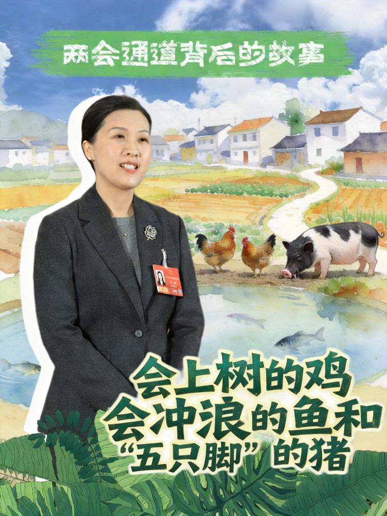在十四届全国人大四次会议第三场“代表通道”上,全国人大代表、海南省保亭黎族苗族自治县副县长吕妍,用一件件满是雨林气息的特色物产,生动讲述了当地生态保护与乡村振兴齐头并进的温暖故事:“这是能煲汤的五指毛桃,那是能做药的益智草……会上树的鸡、不回家的牛、会冲浪的鱼、‘五只脚’的猪……”