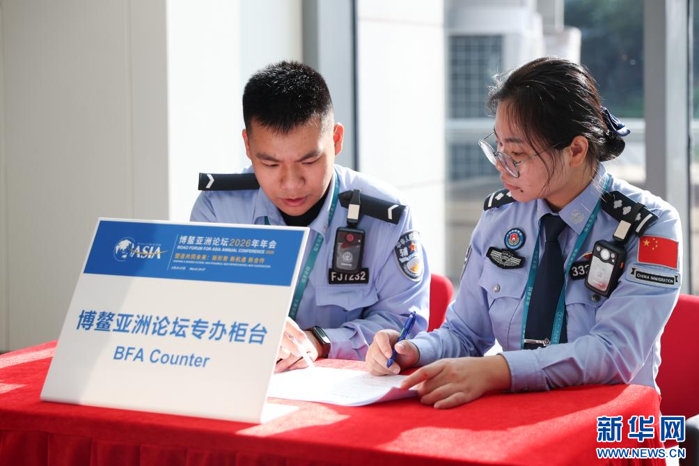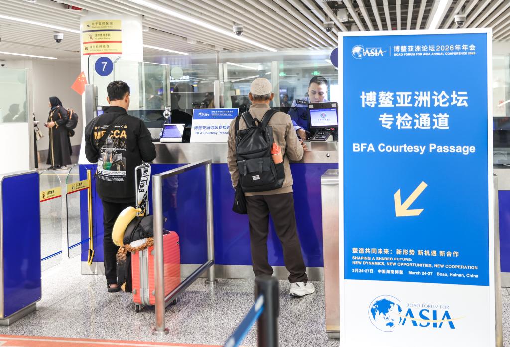 海口美兰、琼海博鳌、三亚凤凰三大国际机场是此次年会重点出入境口岸,自3月22日起陆续迎来与会嘉宾入境高峰。为确保年会期间口岸通关顺畅,海口出入境边防检查总站科学部署勤务,优化通关流程,细化保障措施,通过开设论坛年会专检通道、设置多语种引导岗、专职人员靠前保障等模式,为与会人员提供“一站式”通关服务,最大限度压缩与会人员排队等候时间。