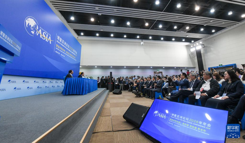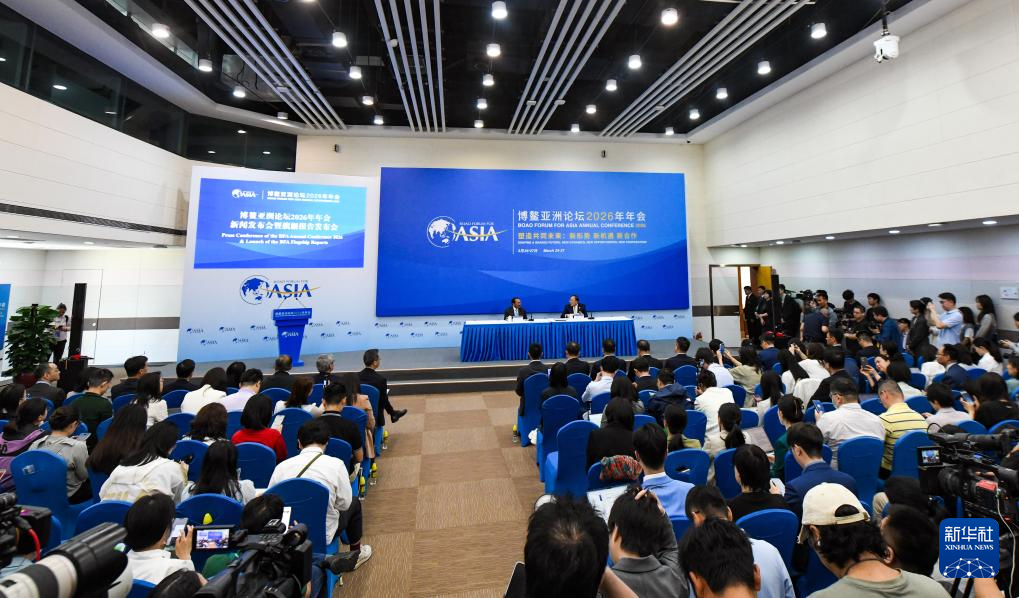 这是3月24日在海南博鳌拍摄的博鳌亚洲论坛2026年年会新闻发布会暨旗舰报告发布会现场。