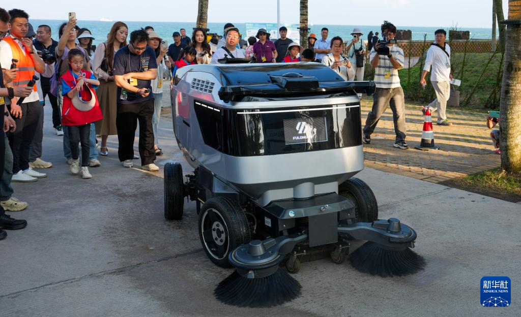 3月23日,智能清扫机器人在海南省琼海市博鳌镇作业。新华社记者 杨冠宇 摄