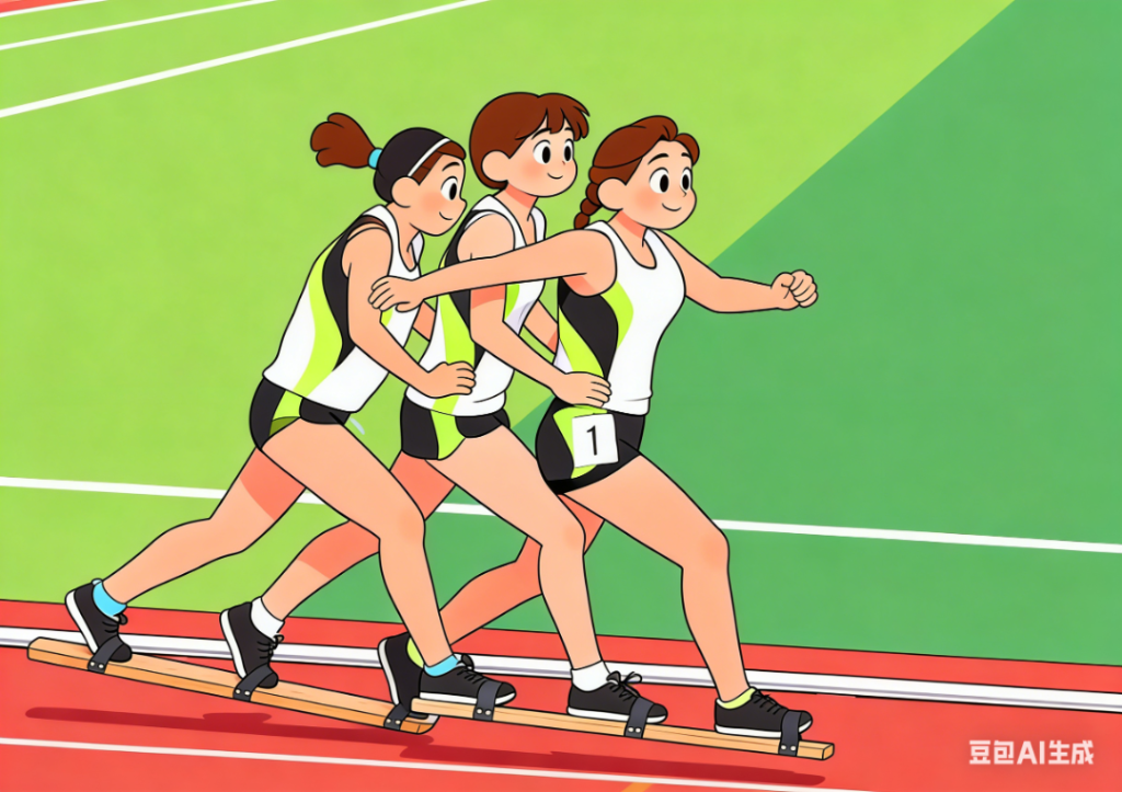 三双脚同时抬起,又同时落下