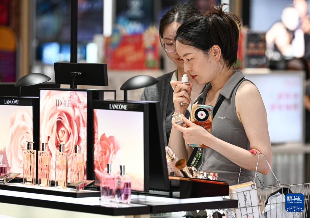 3月25日,顾客在海口日月广场免税店购物。新华社记者 张丽芸 摄