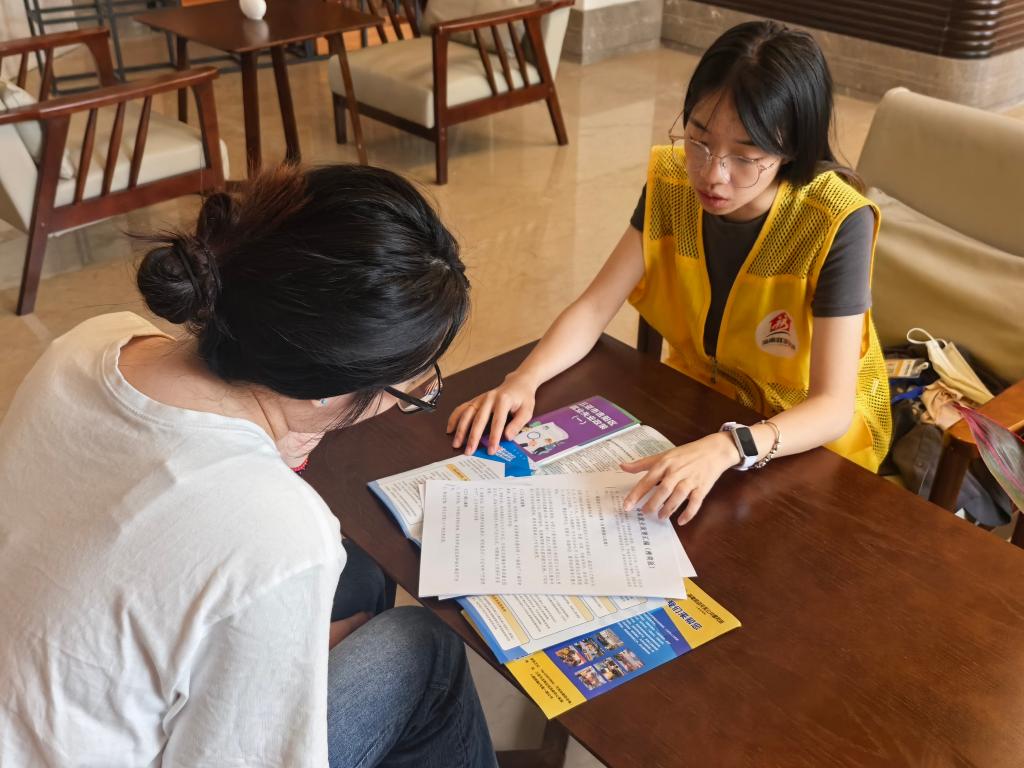 在海南省三亚市的三亚柏栎度假酒店驿站,就业服务工作人员上门为入住青年提供求职指导。新华社记者 夏天 摄