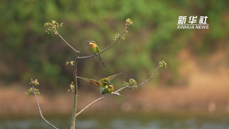 近日,成群的栗喉蜂虎陆续飞抵海南省澄迈县花场湾红树林自然保护区,开启一年一度的繁殖栖息季。