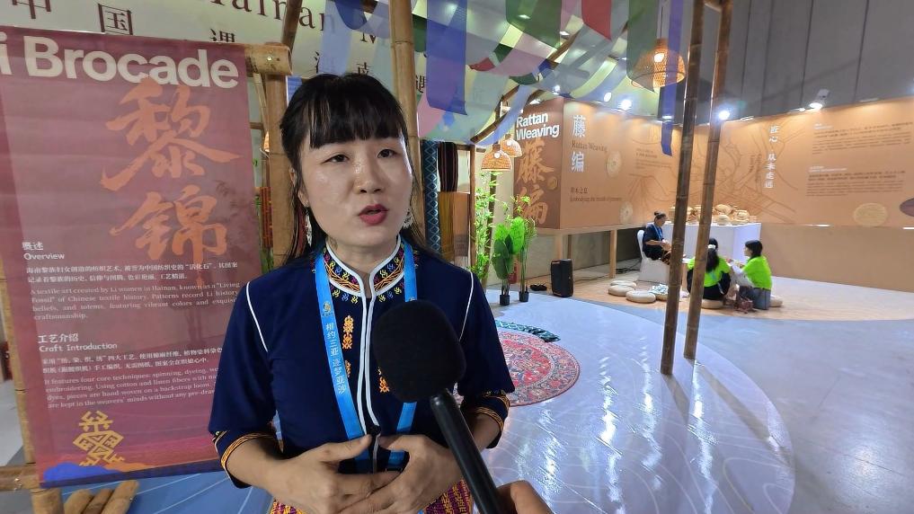 一位来自黎锦展区的展示专员说,这项技艺已经走向国际时装周,明亮的红与黑,怎么搭配都很精神。