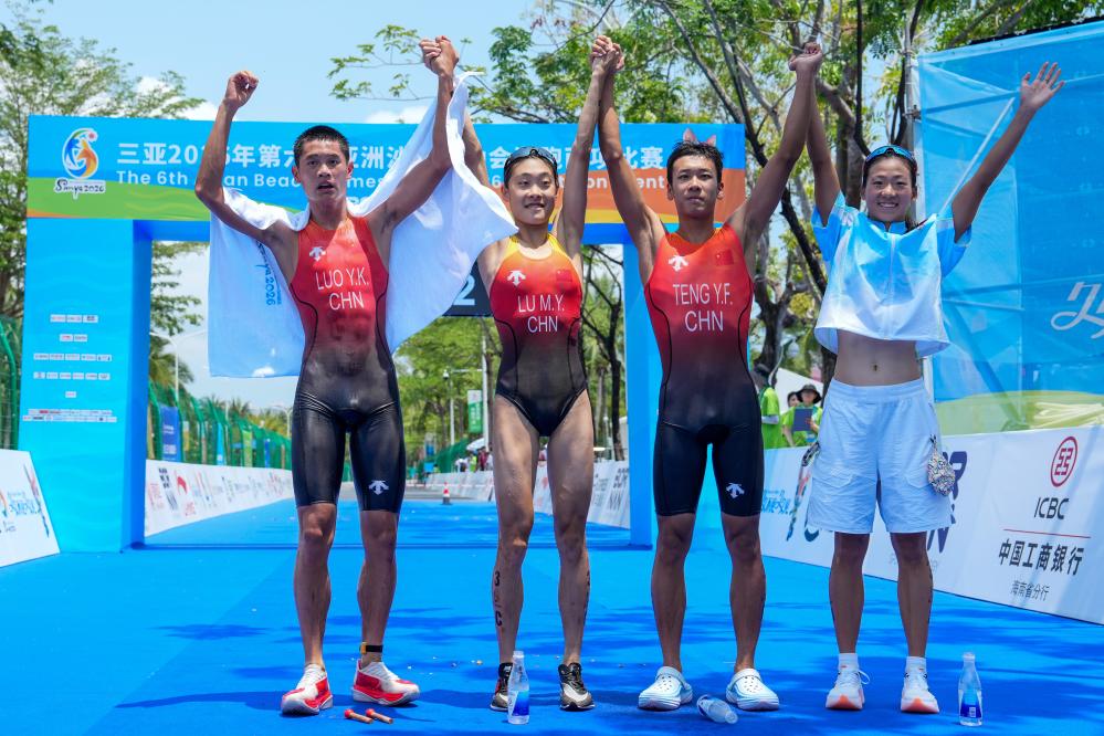 新华社三亚4月27日电(记者刘艺淳、马思嘉、夏天)没有庆功宴,没有休整日。第六届亚洲沙滩运动会游跑两项比赛包揽三枚金牌的中国队,在25日完赛的第二天,便出发前往云南玉溪进行高原训练,以备战名古屋亚运会、洛杉矶奥运会。