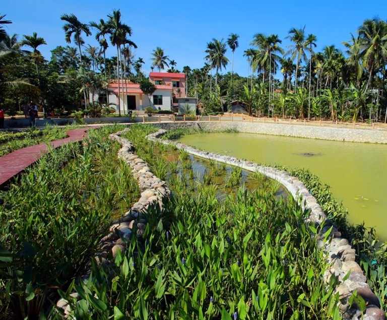 万宁市文通村采用人工湿地等生态治理技术处理生活污水。海南日报记者 张杰 摄